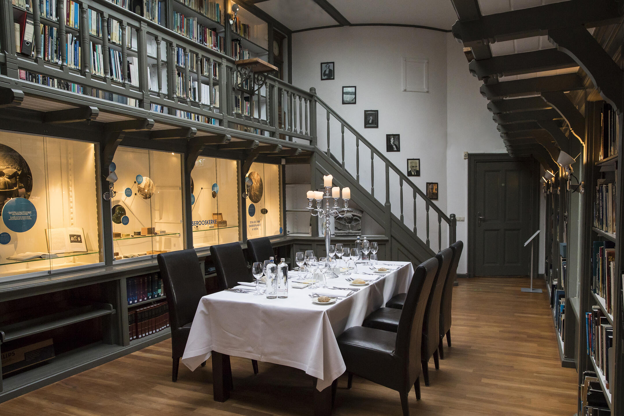 In de historische bibliotheek van de sterrenwacht kun je in alle rust vergaderen. De statige instituutsbibliotheek uit 1909 behoort tot de mooiste in zijn soort en verleent een prettige beslotenheid aan besprekingen.