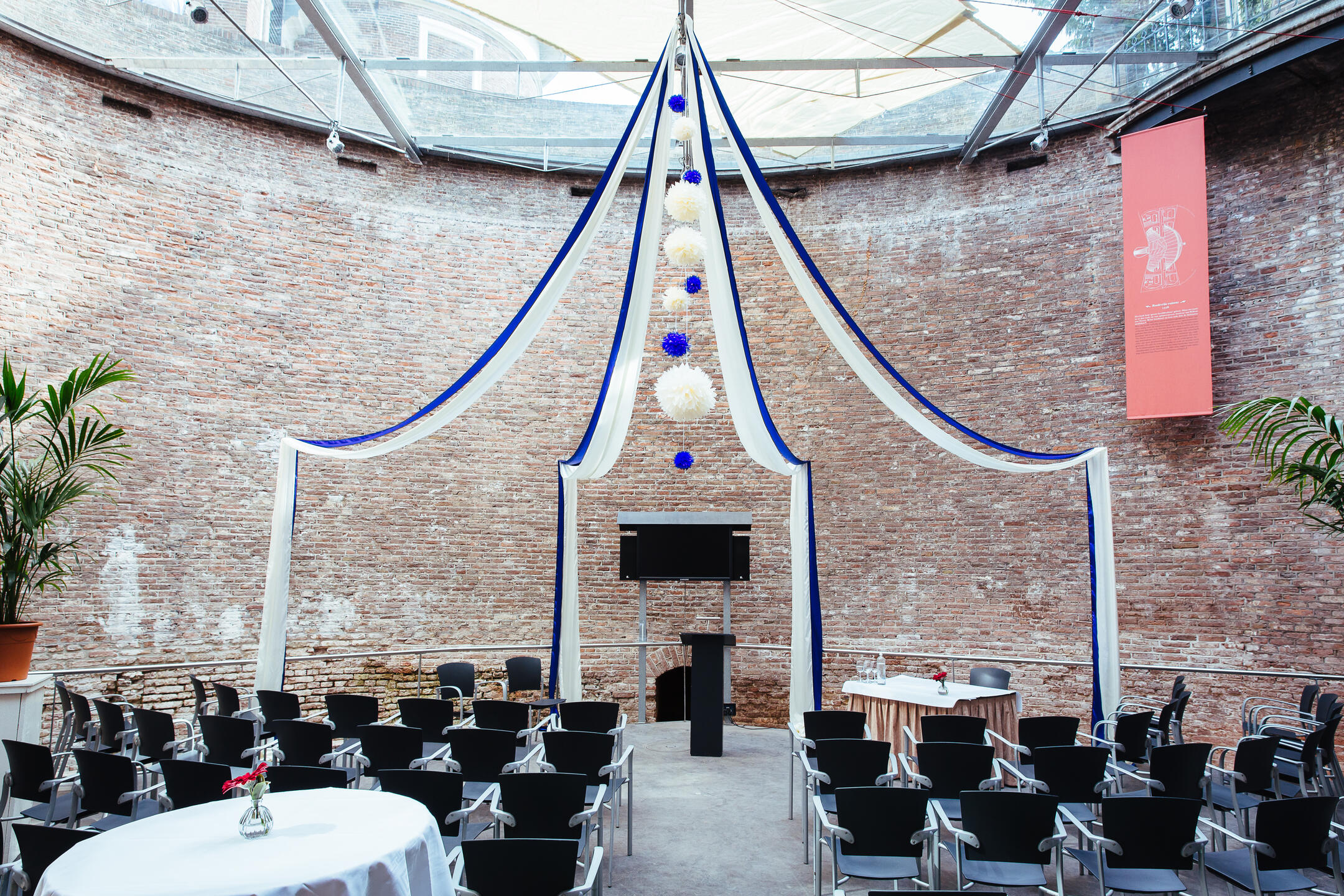Ontdek het Terreplein van Sonnenborgh in Utrecht: een indrukwekkende, overdekte binnenplaats voor borrels, diners en presentaties tot 100 gasten.